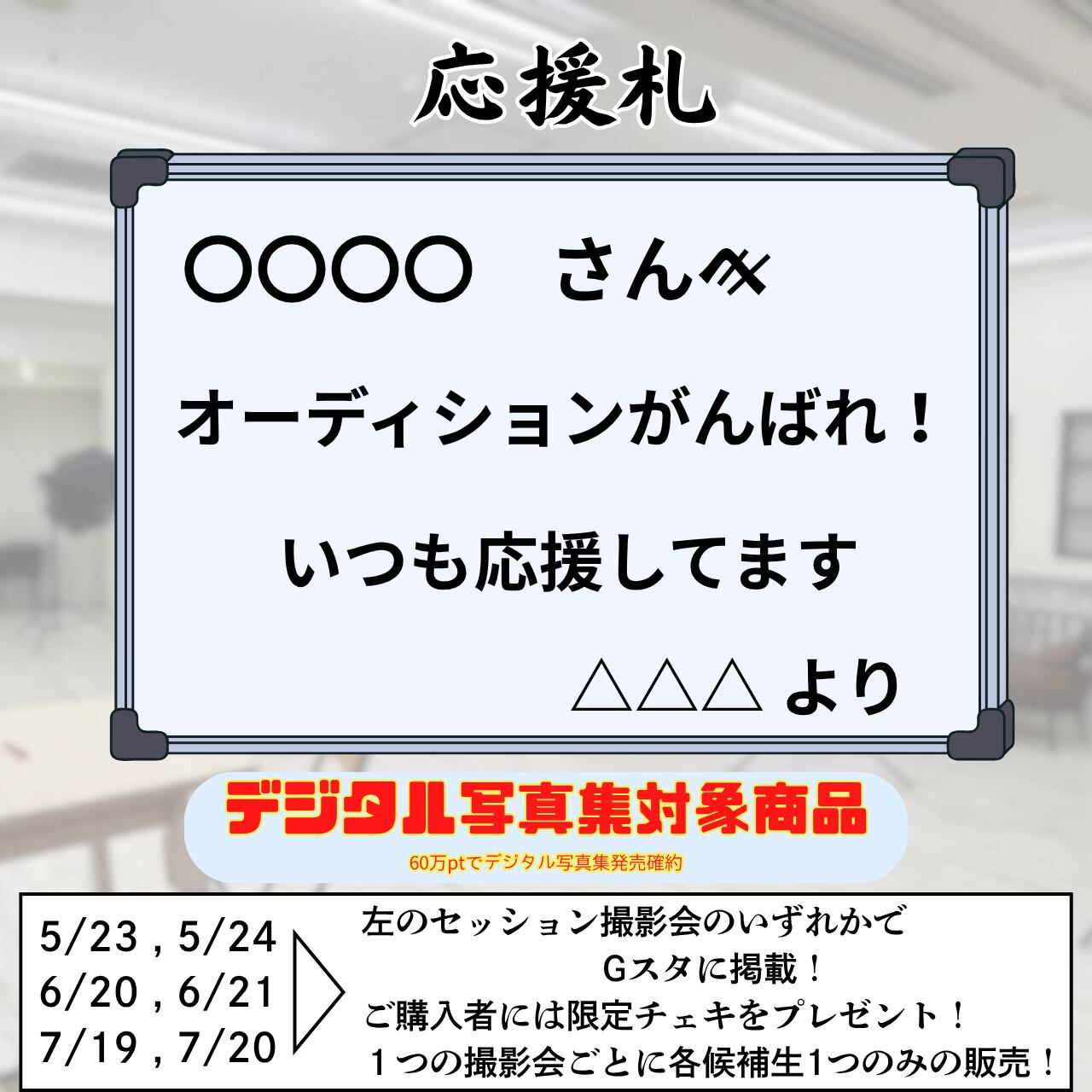 セッション撮影会のいずれかでGスタにあなたからの応援メッセージが入ったボードを掲載!